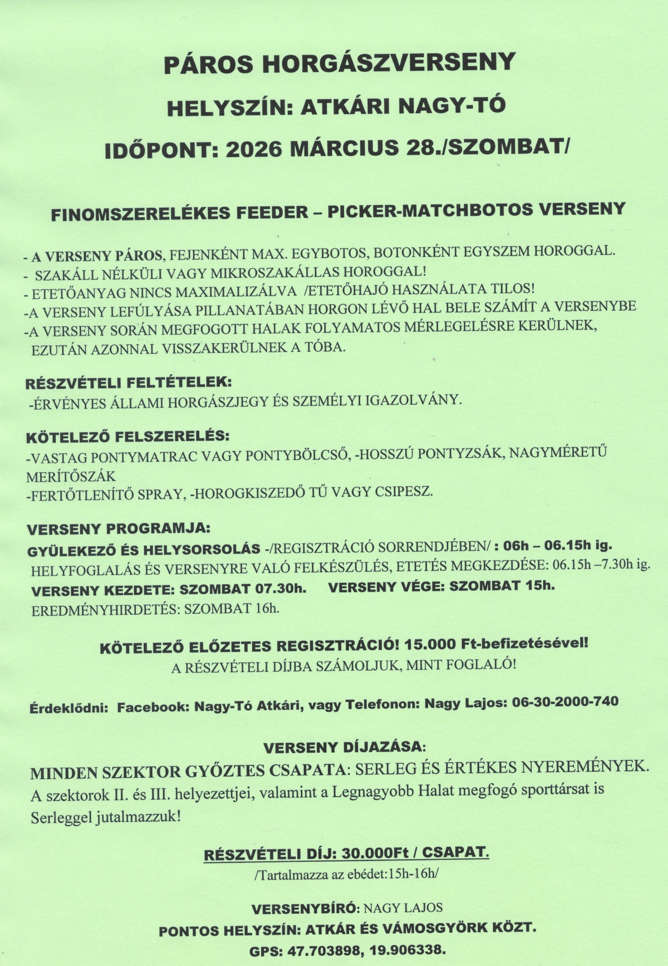 KÖVETKEZŐ VERSENY: MÁRCIUS 28- SZOMBAT- PÁROS HORGÁSZVERSENY!