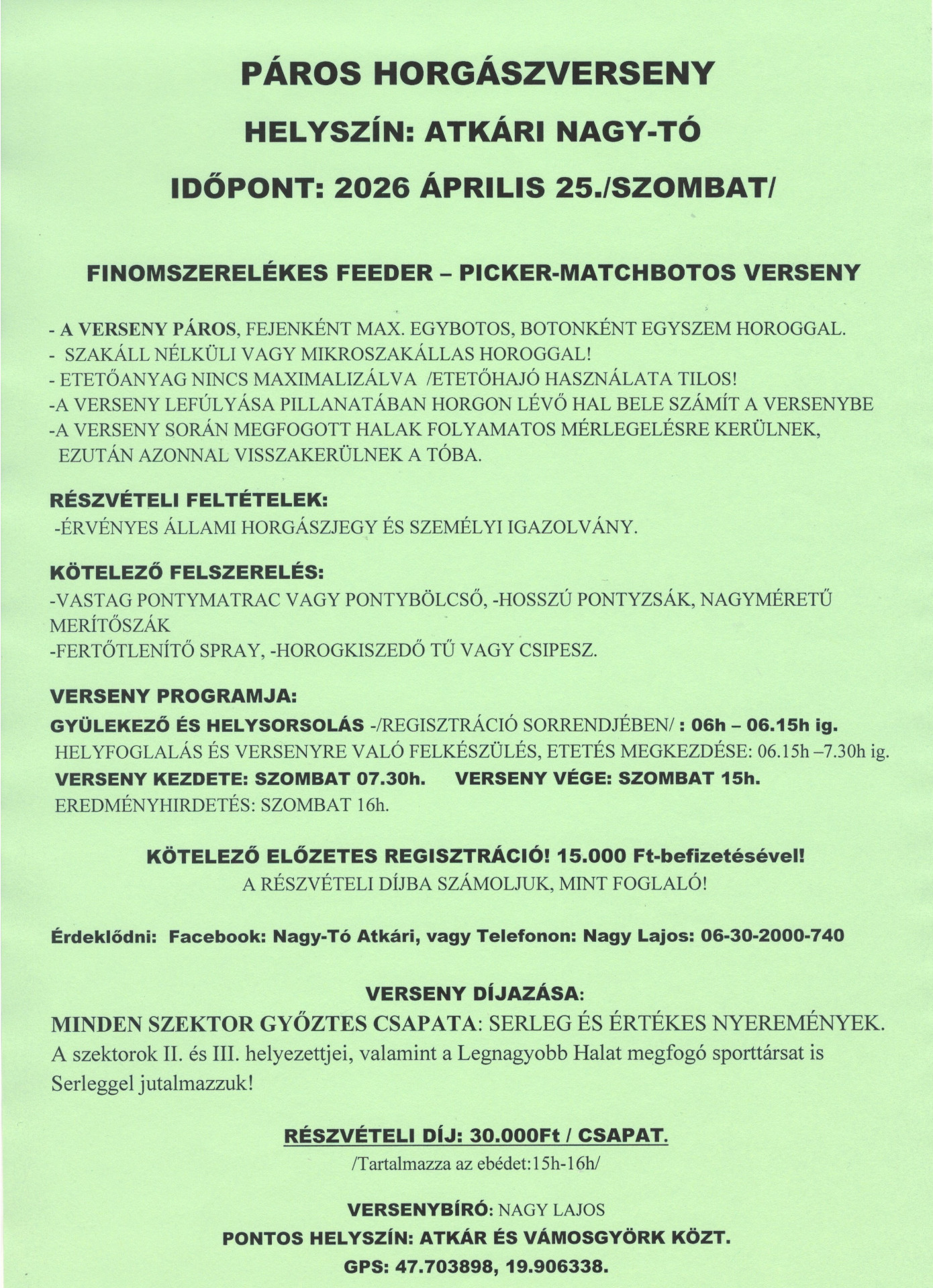 KÖVETKEZŐ VERSENY: ÁPRILIS 25- SZOMBAT- PÁROS HORGÁSZVERSENY!